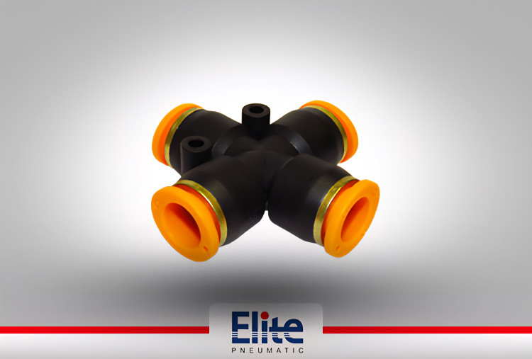 با استفاده از اتصال چهارراهی پنوماتیک الیت،امکان متصل کردن شیلنگ ها از چهار جهت فراهم می شود.